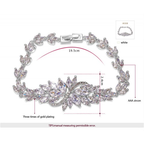 Позолоченный браслет, инкрустированный цирконом. Трёхслойное покрытие белым золотом.