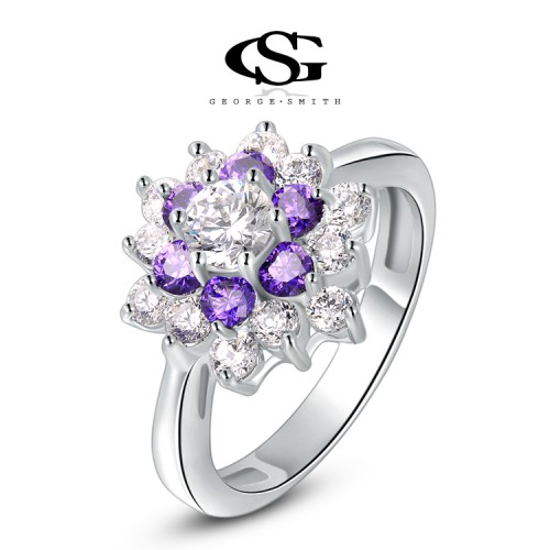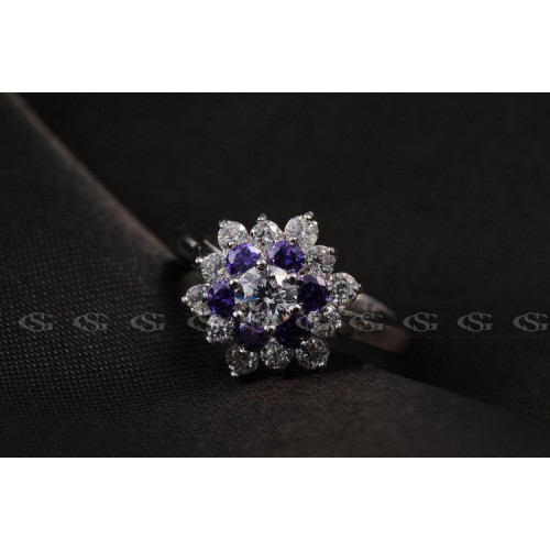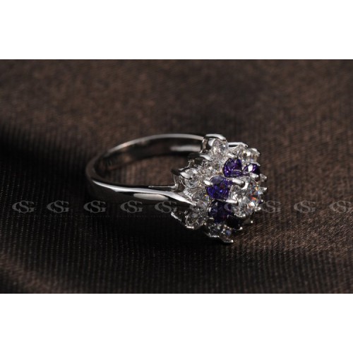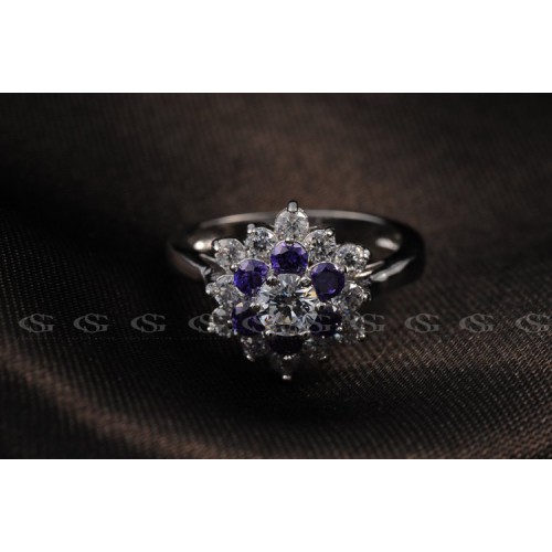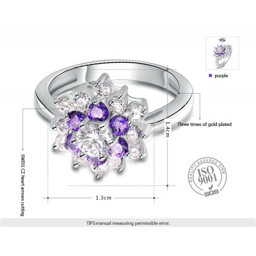 Позолоченное кольцо, инкрустированное швейцарским цирконом. Трёхслойное покрытие белым золотом.