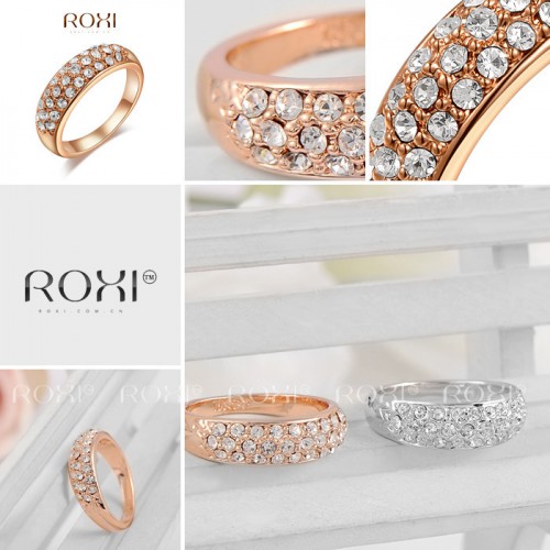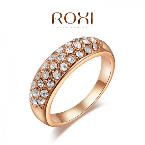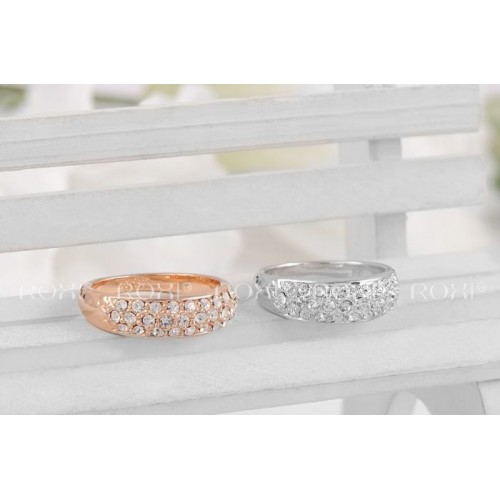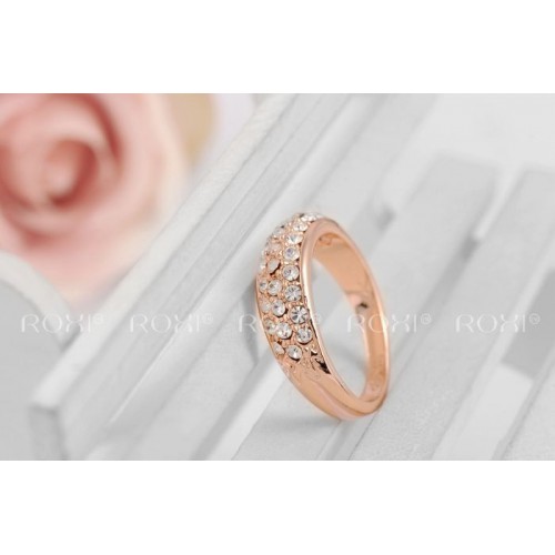 Позолоченное кольцо, инкрустированное австрийскими кристаллами. Трехслойное покрытие розовым золотом.