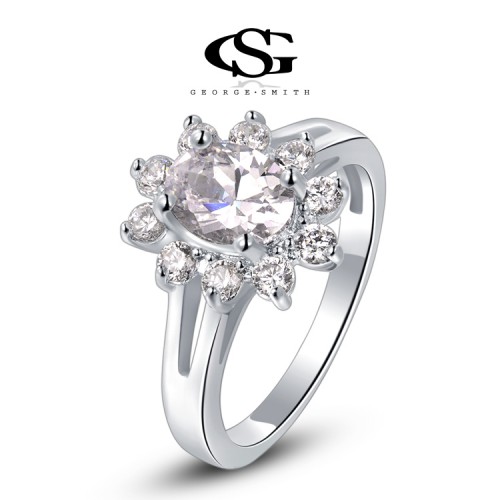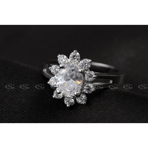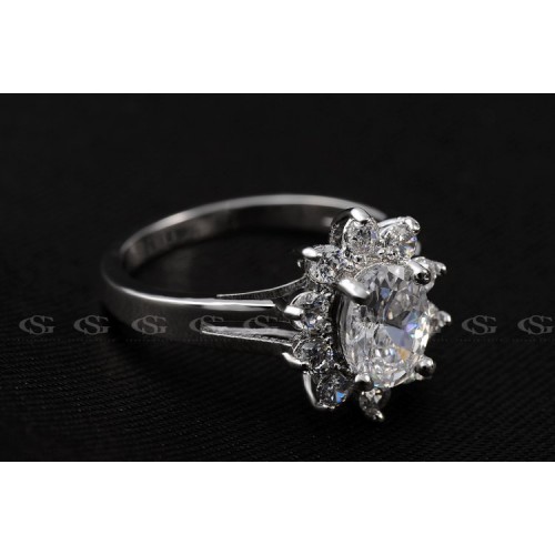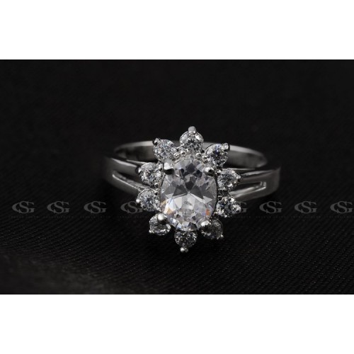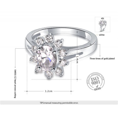 Позолоченное кольцо, инкрустированное швейцарским цирконом. Трёхслойное покрытие белым золотом.