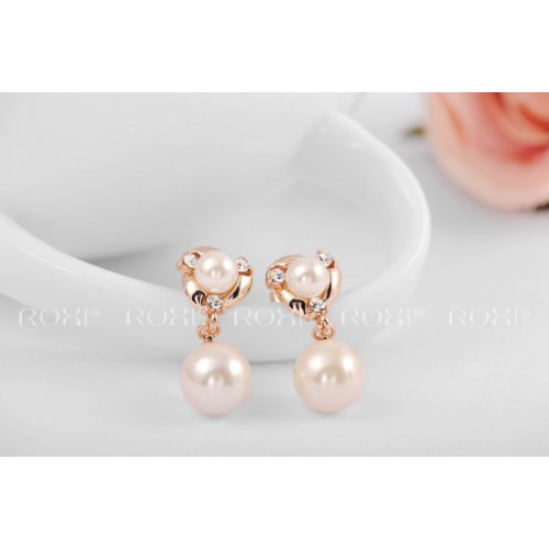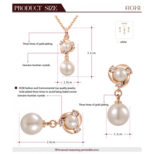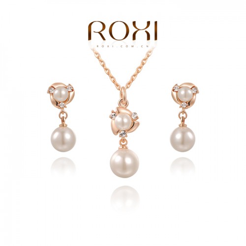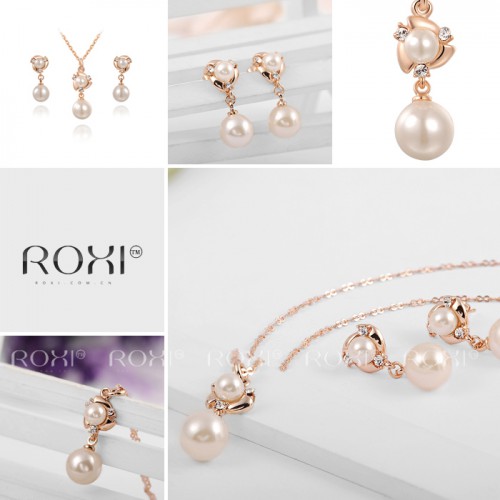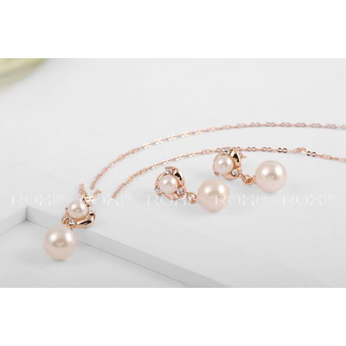 Набор позолоченных изделий, украшенных жемчужинами. Трехслойное покрытие розовым золотом, инкрустация австрийскими кристаллами.