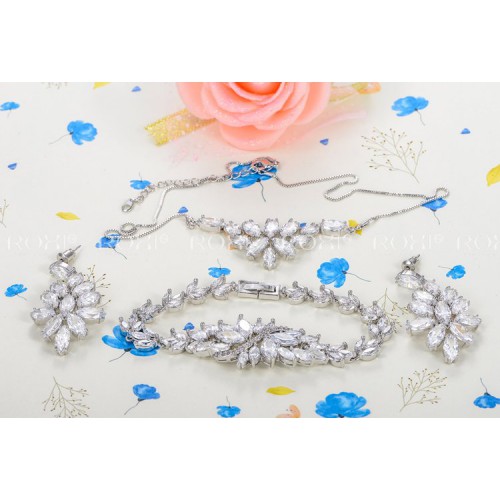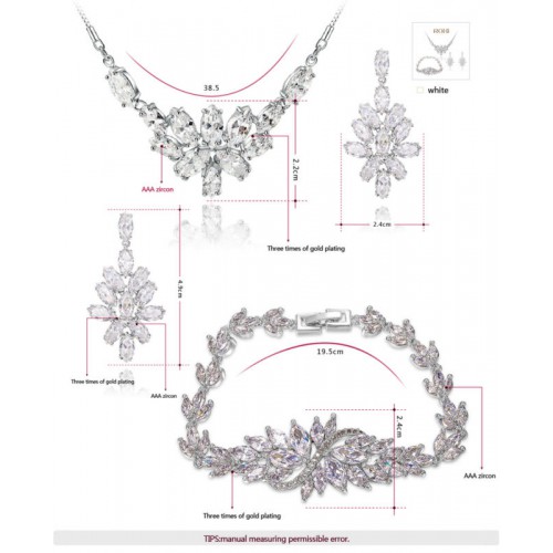 Все изделия набора инкрустированы цирконом и обработаны белым золотом (трёхслойное нанесение).