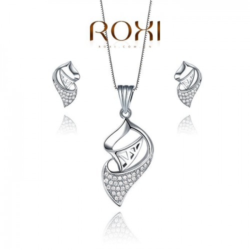 "Набор, состоящий из ожерелья и сережек, покрытых белым золотом (трёхслойное нанесение) и инкрустированных цирконом."