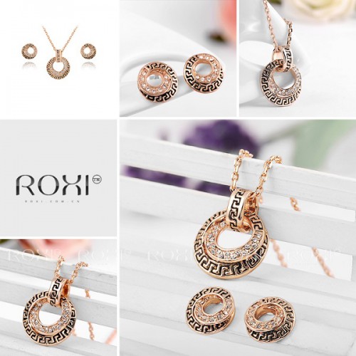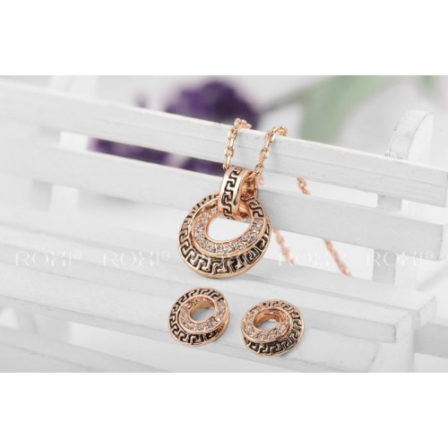 Набор позолоченных изделий, выполненных в греческом стиле. Трёхслойное покрытие розовым золотом, инкрустация австрийскими кристаллами.