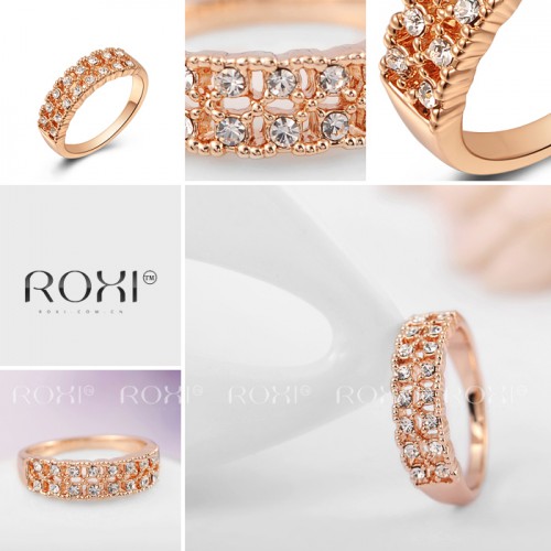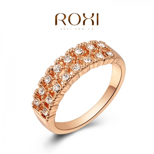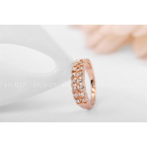 Позолоченное кольцо, инкрустированное австрийскими кристаллами. Трёхслойное покрытие розовым золотом.