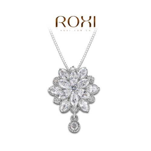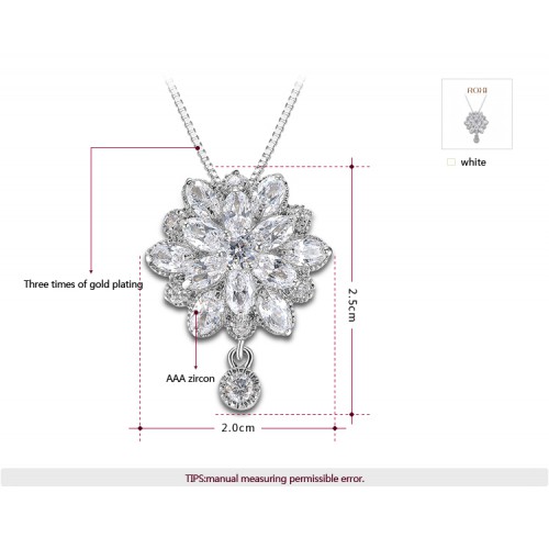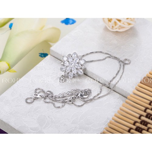 Позолоченное ожерелье в необыкновенном исполнении - инкрустированный цирконами цветок с трёхслойным нанесением белого золота.