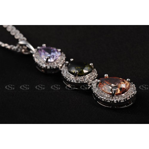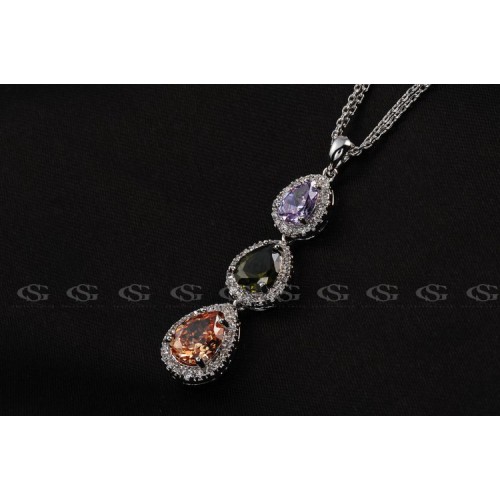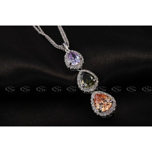 Позолоченное ожерелье, сочетающее в себе необыкновенное и умелое сочетание цветов. Трёхслойное покрытие белым золотом. Инкрустация швейцарским цирконом.
