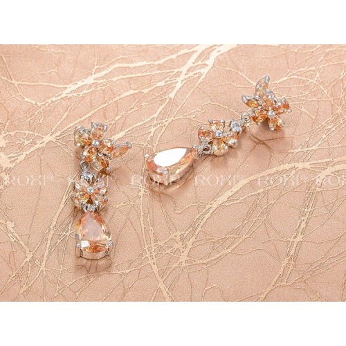 Серьги, инкрустированные цирконом нежного бежевого цвета. Трёхслойное покрытие белым золотом.