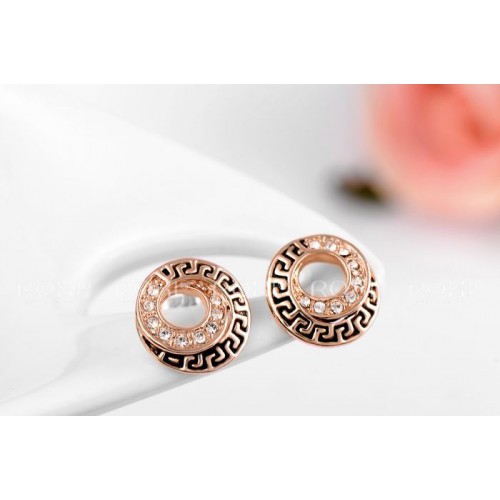 Позолоченные серьги, выполненные в греческом стиле. Трехслойное покрытие розовым золотом. Инкрустировано австрийскими кристаллами.