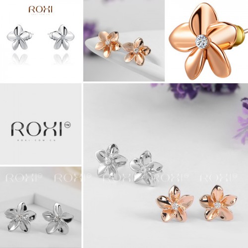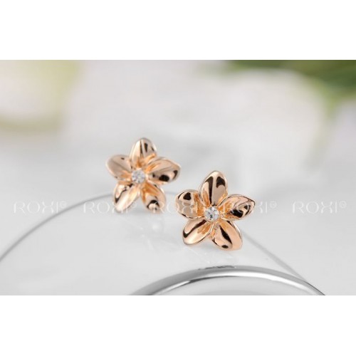 Позолоченные серьги. Трехслойное покрытие розовым/белым золотом. Инкрустировано австрийскими кристаллами.