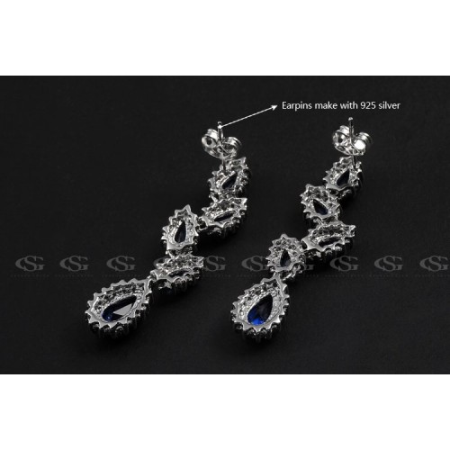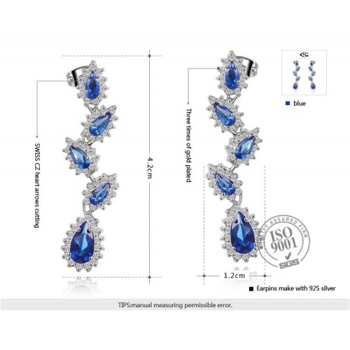 Серьги инкрустированны высококачественным швейцарским цирконом нежного голубого цвета глубокого тона. Очень выразительны!