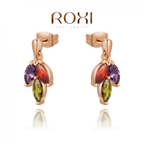 Позолоченные серьги. Трёхслойное покрытие розовым золотом. Инкрустировано цирконом.