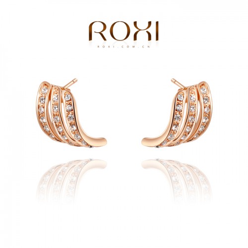 Позолоченные серьги. Трехслойное покрытие розовым золотом. Инкрустировано австрийскими кристаллами.