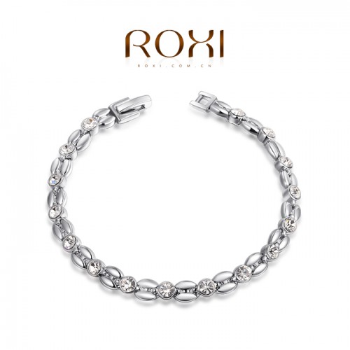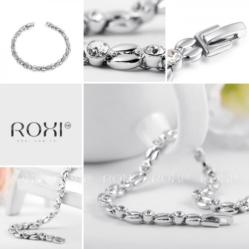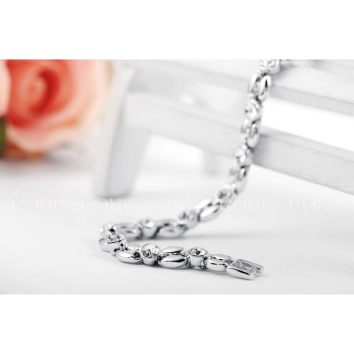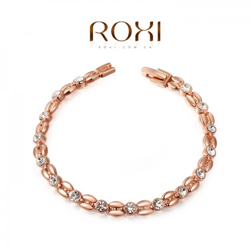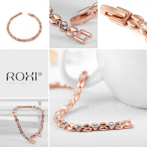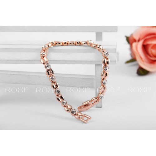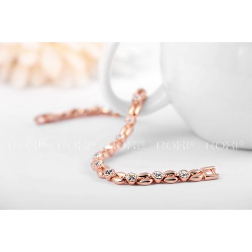 Позолоченный браслет благородных форм и очертаний, трёхслойное покрытие розовым золотом (или белым золотом - на выбор). Инкрустирован австрийскими кристаллами.